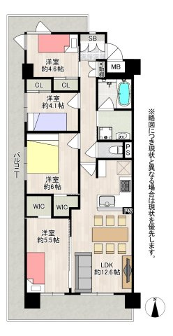 LDK 12.6帖 1室 / 洋室 6.0帖 1室 / 洋室 5.5帖 1室 / 洋室 4.6帖 1室 / 洋室 4.1帖 1室 / |