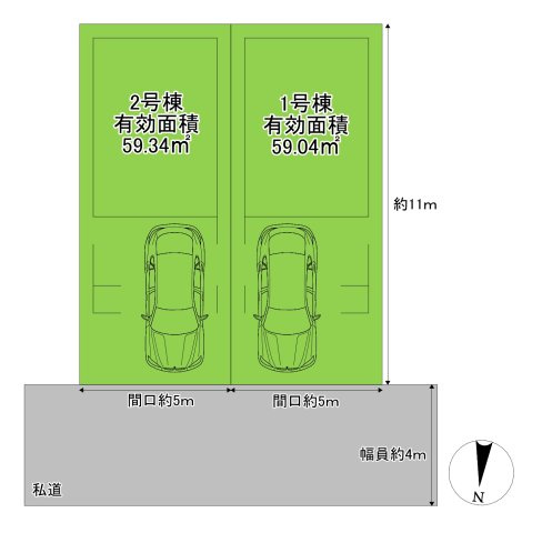| 接道状況 | 一方 (北側 私道4.0m 間口5.0m) | ||