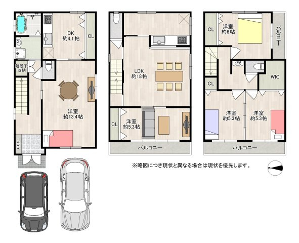 LDK 18.0帖 1室 / DK 4.1帖 1室 / 洋室 13.4帖 1室 / 洋室 6.0帖 1室 / 洋室 5.3帖 1室 / 洋室 5.3帖 2室 / |
