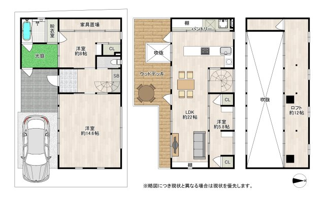 【間取り】◆間取り図 価格 6,980万円 土地面積 124.00㎡ 建物面積 125.02㎡ 構造間取り 木造3階建SE工法3LDK+カースペース 築年月 2001年5月
